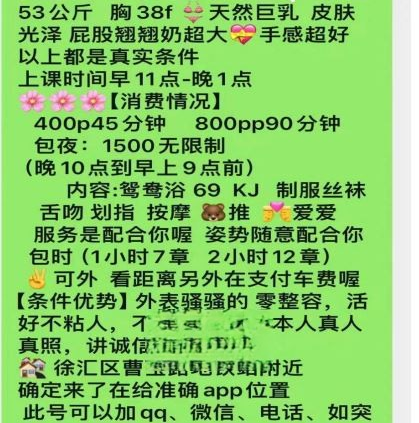 这次分享的妹子属于性价比泄火的,质量一般胜在便宜。妹妹重庆上海两头跑,一般在上海待个一周就回去了,我 ...